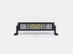 For the optimal combination of durability, capability, and affordability, look no further than this universal Cali Raised LED 14" dual-row 120W LED bar, putting out a massive 12,000 Lumens. Don’t shy away from the darkness. Instead, ignite it with confidence knowing you have 24 premium OSRAM LEDs producing an unparalleled level of brightness you can rely on for 50,000+ Hrs. The 5D Optic design ensures a wide radius and superior lighting distance, no matter the trails you traverse. They're also insanely tough, thanks to the extruded aluminum housing, polycarbonate lenses, and IP rating of 68.