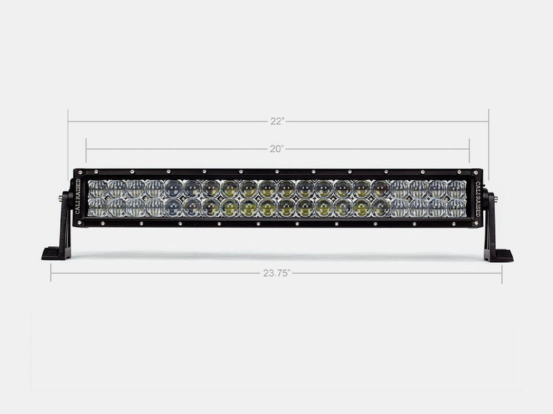 For the optimal mix of durability, capability, and affordability, look no further than this universal Cali Raised LED 22" dual-row 200W LED bar, putting out an impressive 20,000 Lumens. Ignite the night with confidence rather than shying away from it. The 5D Optic design ensures a wide radius and superior lighting distance, no matter the terrain you traverse. 40 premium OSRAM LEDs produce an unparalleled level of brightness you can rely on for 50,000+ Hrs. They're also incredibly tough, thanks to the extruded aluminum housing, polycarbonate lenses, and IP rating of 68.