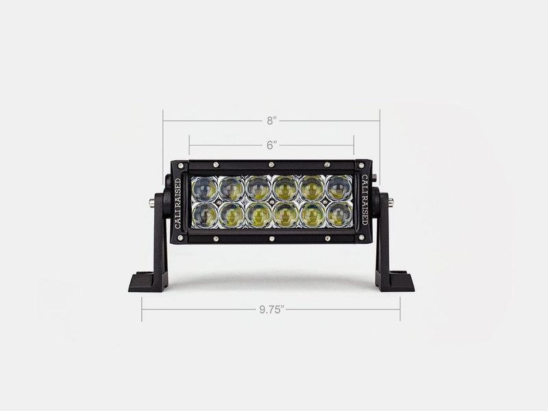 The perfect mix of capability, durability, and affordability. This universal Cali Raised LED 8" Dual-Row LED bar puts out an impressive 6,000 Lumens. Allowing you to ignite the night, not shy away from it. The 5D Optic design ensures a wide radius and superior lighting distance, no matter the terrain. 12 premium OSRAM LEDs produce an unmatched level of brightness you can rely on for 50,000+ Hrs. They're also incredibly durable, thanks to their polycarbonate lenses and extruded aluminum housing.