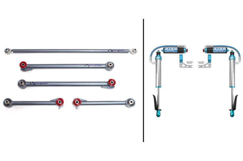 Our KING 2.5" rear shock and link packages offer improved rear end performance on your Toyota/Lexus SUV. With tough 1.5" .188 wall 4130 chromoly construction and urethane pivot bushings our links are stronger and offer less deflection than OEM links with rubber bushings. Paired with high performance KING 2.5" diameter rear shocks with remote reservoirs and compression adjusters you can fine tune your ride based on your driving preferences.
