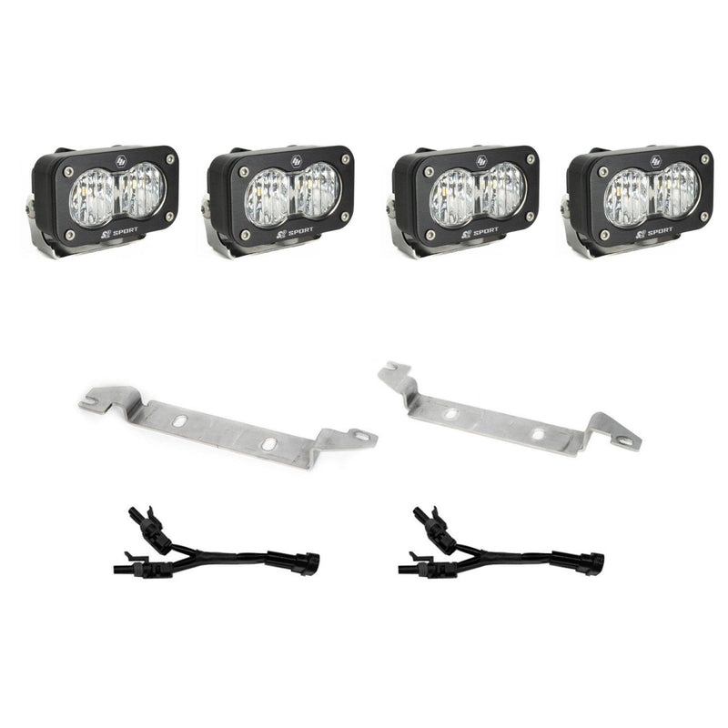 This premium LED lighting kit is configured with four S2 Sports offering 1,581 raw lumens each to illuminate zones 1 and 2 in front of your vehicle makes this the perfect trail ready solution.