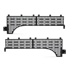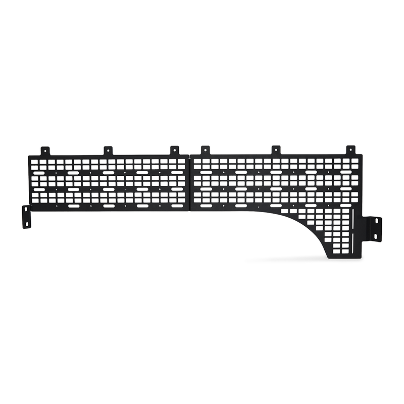 Take advantage of that extra space by converting the sides of your truck bed with our custom-designed MOLLE panel system. Laser-cut and bent to perfection providing a seamless fit, and as always, professionally powder coated to protect against corrosion. Our mounts are designed to be strong but light and extremely versatile to allow you to mount anything from MOLLE bags, trail gear, tools, high lift jacks, axes, shovels, and more for use on the road and trail. Combine all these great features with our 2-year warranty on all vehicle mounting systems so you can drive into the wilderness well-equipped.
