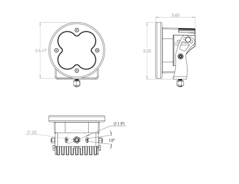 Note: This light does Not come with a wiring harness. The applicable wiring harness for this light is 640115 (On/Off Wiring Harness 3-pin)